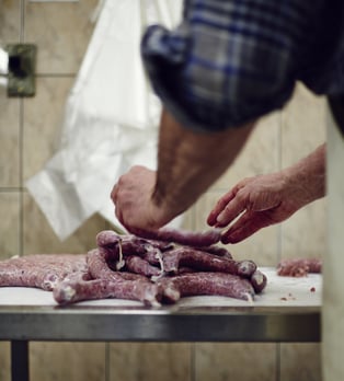 handanlegen und stellen Hand in Hand mit dem Profi Ihre eigene Bio Schweinsbratwurst, Bio Salsiccia, Bio Buureschüblig sowie Salametti her.